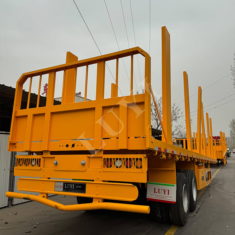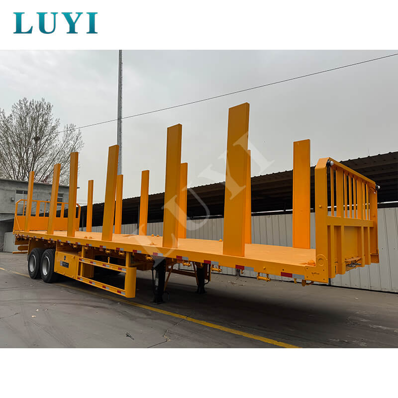 Shandongin maakunnassa Kiinassa valmistettu 2-akselinen 40-tonninen lavapuoliperävaunu pylväillä on upouusi kuorma-auton perävaunu, joka on suunniteltu erityisesti puun kuljetukseen. Koko ajoneuvo on valmistettu korkealaatuisesta teräksestä, jossa on vankka ja kestävä rakenne ja maksimi tehollinen 40 tonnin kuorma, joka pystyy vastaamaan vakaasti erilaisiin puunkuljetustarpeisiin.