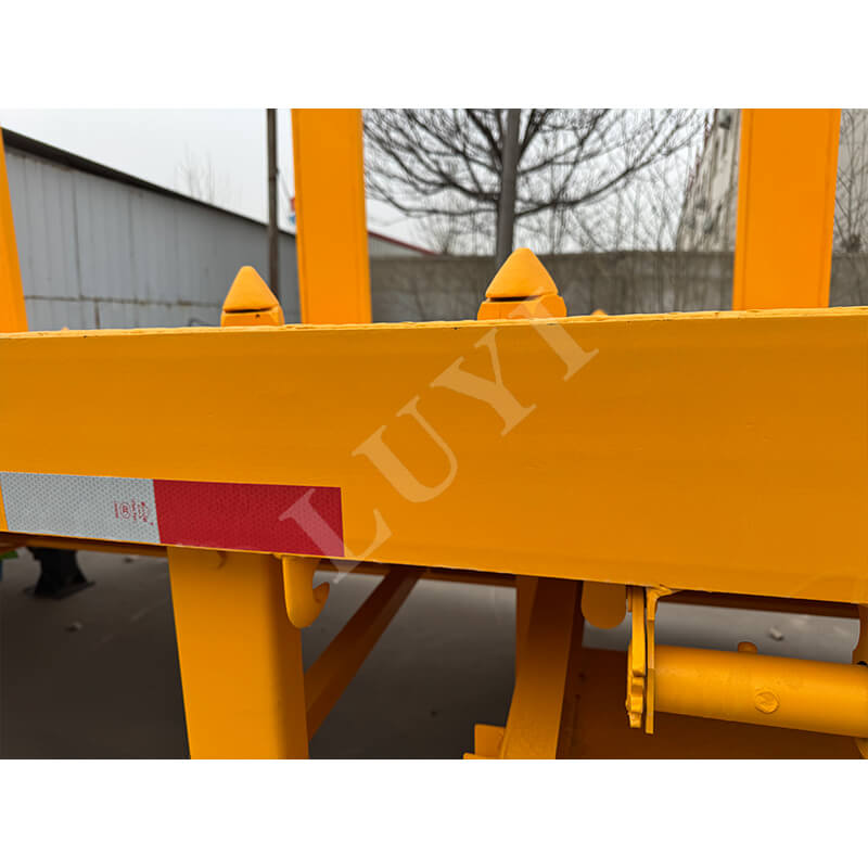 Ajoneuvo on varustettu 2-akselisilla 13 tonnin akseleilla, valinnaisilla BPW- tai Fuhua-merkeillä, yhdistettynä luotettavaan mekaaniseen jousitukseen vahvan ajovakauden takaamiseksi; se käyttää 12R22.5 renkaita, jotka soveltuvat erilaisiin tieolosuhteisiin, ja vakiona 28 tonnin tukijalat varmistavat pysäköintiturvallisuuden. Kingpin tarjoaa kaksi vaihtoehtoa: 2 tuuman (50 mm) tai 3,5 tuuman (90 mm) JOST, joka on yhteensopiva eri traktoreiden kanssa. Pylväsrakenne kiinnittää puun tiukasti estämään siirtymistä kuljetuksen aikana, ja väriä voidaan räätälöidä asiakkaan tarpeiden mukaan yhdistämällä käytännöllisyys ja joustavuus tehokkaaksi ratkaisuksi puulogistiikkaan ja -kuljetukseen.