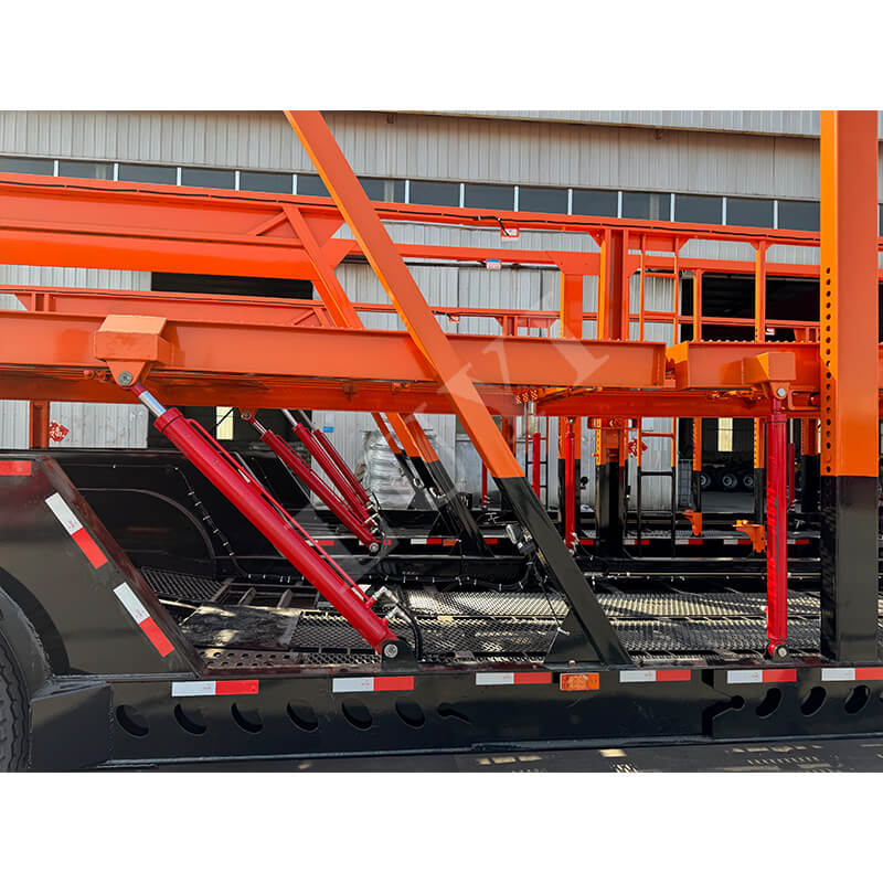 2-akselinen 8-paikkainen autokuljetuspuoliperävaunu. Runko on valmistettu lujasta teräksestä, jossa on vakaa kantava rakenne ja varustettu hydraulisella nostojärjestelmällä, jolla voidaan joustavasti säätää pysäköintipaikkojen korkeutta, soveltuu eri mallien kuormaukseen. Se voi kuljettaa tehokkaasti 8 ajoneuvoa kerralla, mikä auttaa autologistiikkateollisuutta parantamaan kuljetusten tehokkuutta.