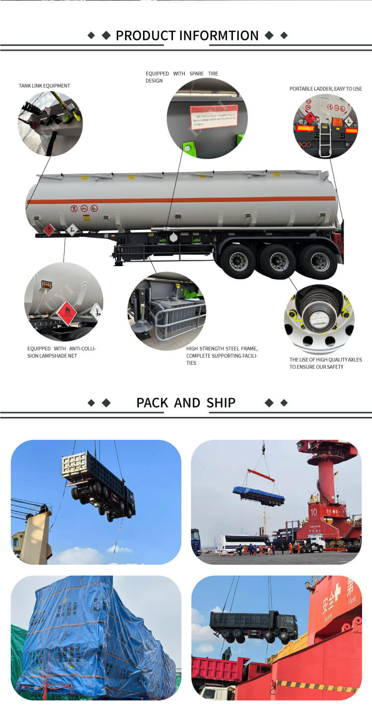 Luyi 3-akselinen 30 000 litran elintarvikekäyttöinen öljysäiliöpuoliperävaunu, joka on peräisin Shandongin maakunnasta, Kiinasta, on luotettava vaihtoehto tehokkaille ja turvallisille kuorma-autojen puoliperävaunuille. Sen mitat ovat 12 500 × 2 500 × 3 600 mm, ja se on valmistettu hiiliteräksestä tai alumiinimateriaaleista, joissa yhdistyvät lujuuden ja keveyden edut, ja sen maksimi hyötykuorma on 60 tonnia, mikä mahdollistaa aineiden, kuten dieselin, bensiinin, öljyn ja raakaöljyn, vakaan kuljetuksen.