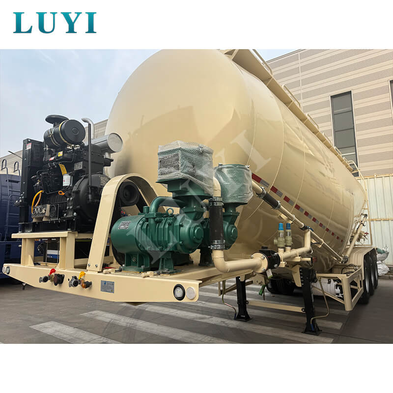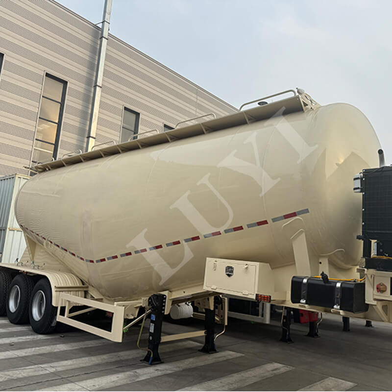 LUYI 3-akselinen 35-50 kuutiometrin sementtisäiliöpuoliperävaunu, joka on peräisin Shandongin maakunnasta, Kiinasta, on korkealaatuinen puoliperävaunu, joka on erityisesti suunniteltu tehokkaaseen sementin kuljetukseen. Sen suurin tehollinen kantavuus on 70 tonnia ja tilavuus 35-50 kuutiometriä, mikä mukautuu joustavasti eri mittakaavaisiin kuljetustarpeisiin.