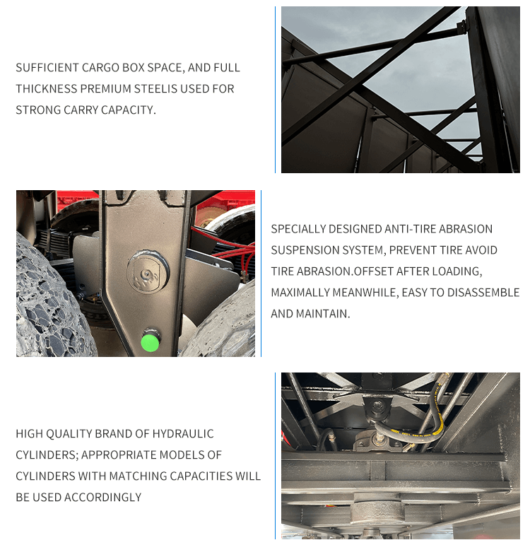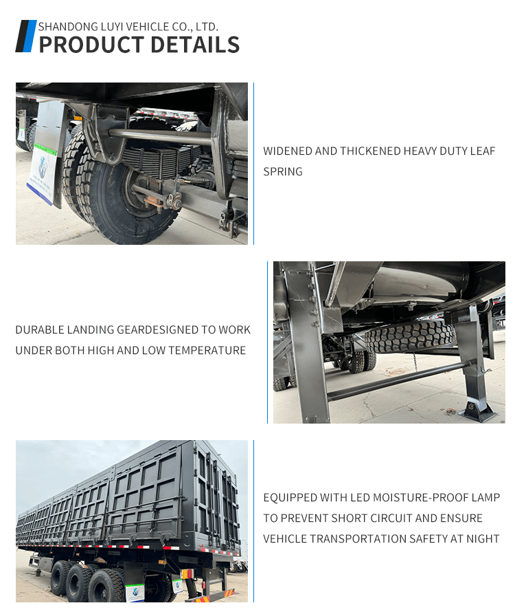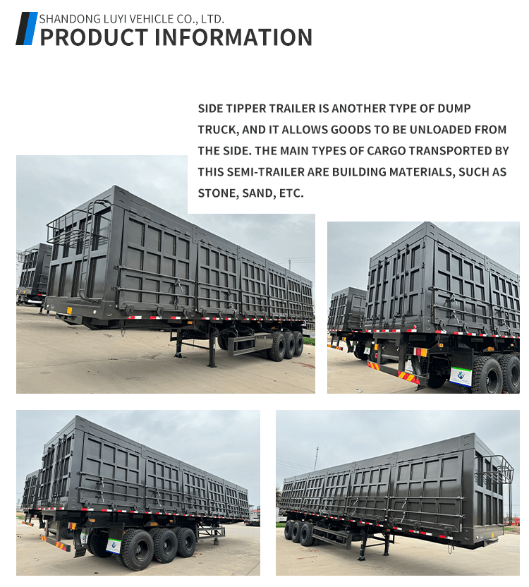 Tämä LUYI:n 3-akselinen 40 tonnin sivukippipuoliperävaunu on tehokas ratkaisu raskaisiin kuljetuksiin. Se on peräisin Shandongin kaupungista, Kiinasta, ja siinä on upouusi rakenne ja ensiluokkainen teräs, mikä varmistaa kestävyyden kestämään vaikeita kuljetusolosuhteita.