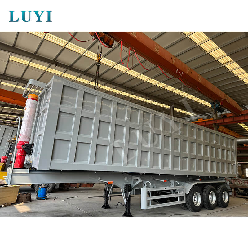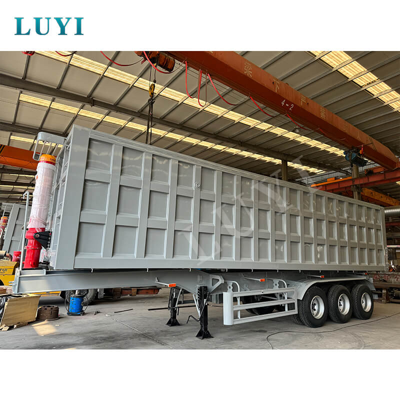 Tämä LUYI:n 3-akselinen 50-60 tonnin hydraulinen nostosylinterinen takakippipuoliperävaunu on raskaaseen käyttöön tarkoitettu ratkaisu hiekan ja soran kuljetuksiin. Se on peräisin Shandongista, Kiinasta, ja se on valmistettu korkealaatuisesta teräksestä, ja sen maksimihyötykuorma on 80T, joten se käsittelee raskaita kuormia vaivattomasti.