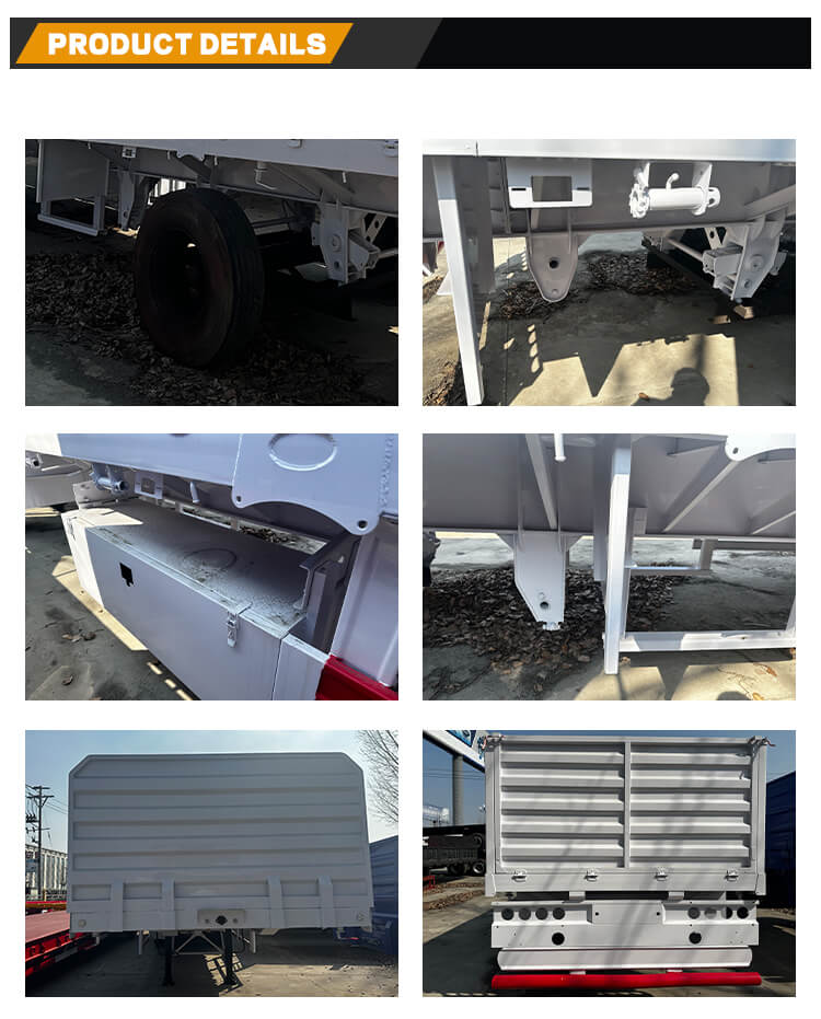 Mitat 12500×2500×1600 mm, se on varustettu 3 akselilla (valinnainen tunnetuilta merkeiltä, kuten Fuhua, BPW, SAIF ja CIMC) ja kaksoisjousitusvaihtoehdoilla (mekaaninen ja ilmajousitus) tasaista ajoa varten. Vakiona olevat 28 tonnin tukijalat varmistavat turvallisen lastaamisen ja purkamisen, kun taas 12R22.5/12.00R20/11R22.5 renkaat mukautuvat erilaisiin tieolosuhteisiin. Lisäksi 90×13×10 mm lehtijouset lisäävät kantavuutta, mekaaniset tikkaat parantavat käyttömukavuutta, värit ovat muokattavissa ja venttiiliohjattu jarrujärjestelmä lisää ajoturvallisuutta ja tarjoaa luotettavaa tukea kuljetukselle.