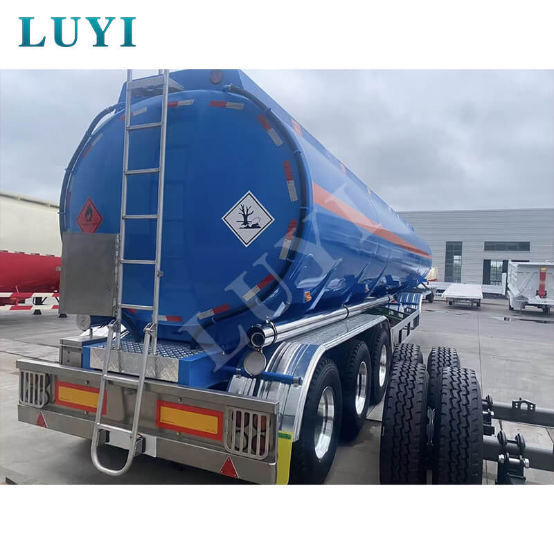 LUYI:n 3-akselinen hiiliteräksinen öljysäiliöpuoliperävaunu on raskaaseen käyttöön suunniteltu kuljetusratkaisu, joka on suunniteltu tehokkaaseen bensiinin ja öljyn toimitukseen. Säiliön tilavuus on 40 000 - 45 000 litraa ja maksimi hyötykuorma yli 30 000 kg. Ensiluokkaisesta hiiliteräksestä valmistetun perävaunun vankka mitat ovat 10 800 × 2 550 × 3 700 mm, mikä varmistaa kestävyyden ja vakauden pitkillä reiteillä.