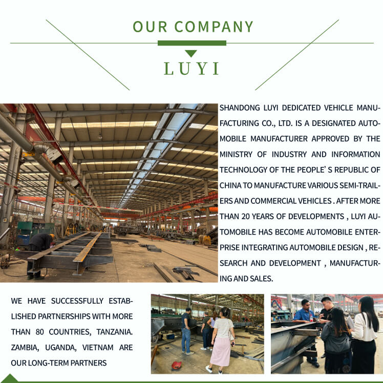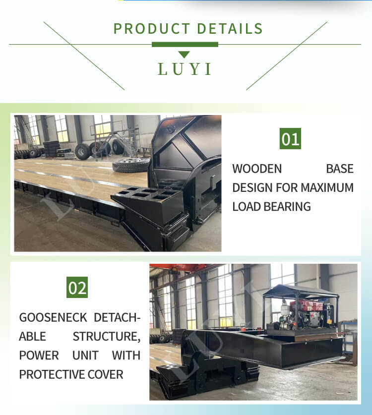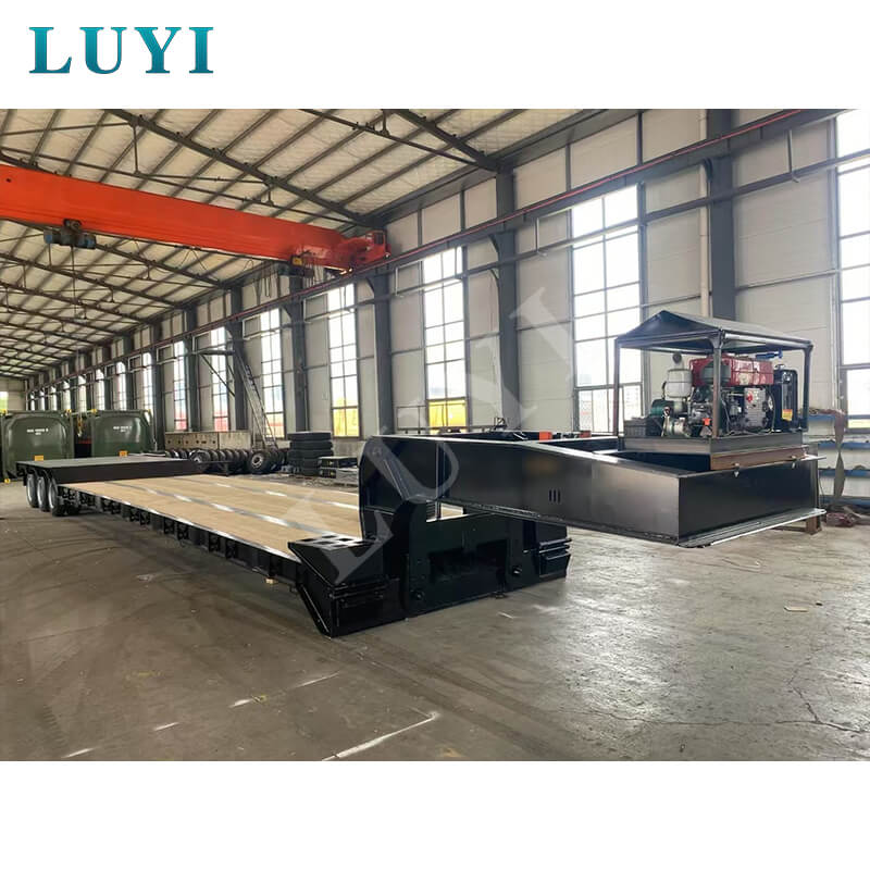 Luyi Vehiclen Shandongissa Kiinassa valmistama 3-akselinen irrotettava hanhenkaulapuoliperävaunu on luotettava raskaaseen käyttöön tarkoitettu kuljetusratkaisu, jonka suurin hyötykuorma on 100 tonnia. Sen mitat ovat 15 000 × 3 000 × 1 800 mm, ja se sopii täydellisesti kuorma-autojen perävaunusovellusten tarpeisiin.