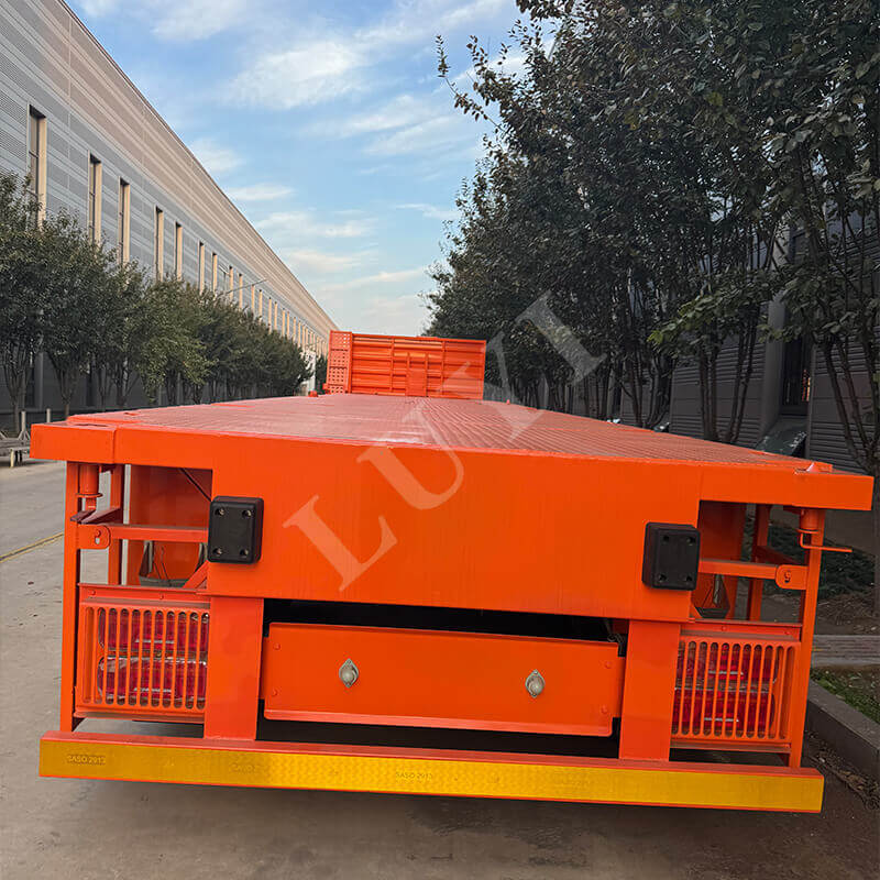 Shandongista Kiinasta peräisin oleva 3-akselinen 60 tonnin raskas lastipainotteinen lavapuoliperävaunu on tehokas työkalu konttikuljetukseen, jossa yhdistyvät vahvuus ja joustavuus. Sen suurin hyötykuorma on 60 tonnia keskittyen pääasiassa 40 jalan konttikuljetuksiin. Akselit voidaan valinnaisesti konfiguroida 2/3/4-akselilla, joita tukevat kaksi tunnettua merkkiakselia, Fuwa ja BPW, mikä varmistaa vakaan ja luotettavan raskaan kuorman kuljetuksen.