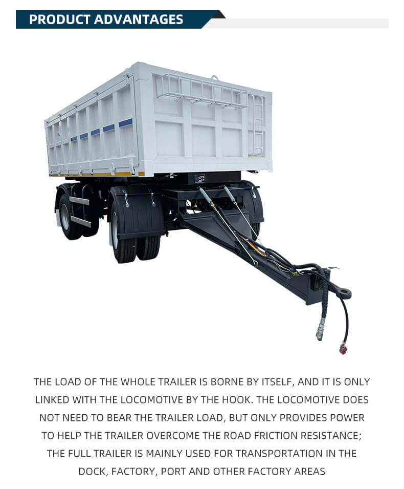 Tämä tuote on 3-akselinen täysperävaunuinen kippipuoliperävaunu, joka on erityisesti suunniteltu hiilikaivosten kuljetusskenaarioihin, ja sen tärkeimmät edut ovat luja kantavuus ja joustava sopeutumiskyky.