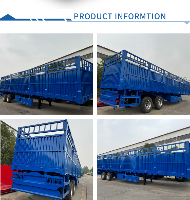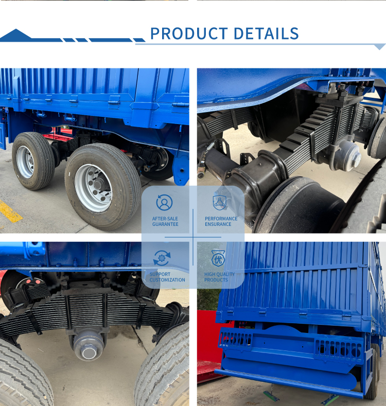 Korkealaatuisesta teräksestä valmistetun perävaunun kestävyys ja kulutuskestävyys, kun taas lisävarusteena saatava mekaaninen tai ilmajousitus parantaa ajomukavuutta ja suojaa rahtia. Sen mukana tulee 12R22.5/12.00R20/11R22.5 rengasvaihtoehdot ja vakio 28 tonnin laskuteline, jota täydentävät 2" (50mm) tai 3.5" (90mm) JOST-kuningastapit turvalliseen liitäntään traktoreihin. Tämä aitapuoliperävaunu, joka on räätälöitävissä mieltymystesi mukaan, on ihanteellinen irtotavaroiden, rakennusmateriaalien ja teollisuustarvikkeiden kuljetukseen, ja se tarjoaa luotettavan suorituskyvyn, monipuolisen muunnettavuuden ja pitkäkestoisen arvon rajat ylittäviin logistiikkatoimintoihin.