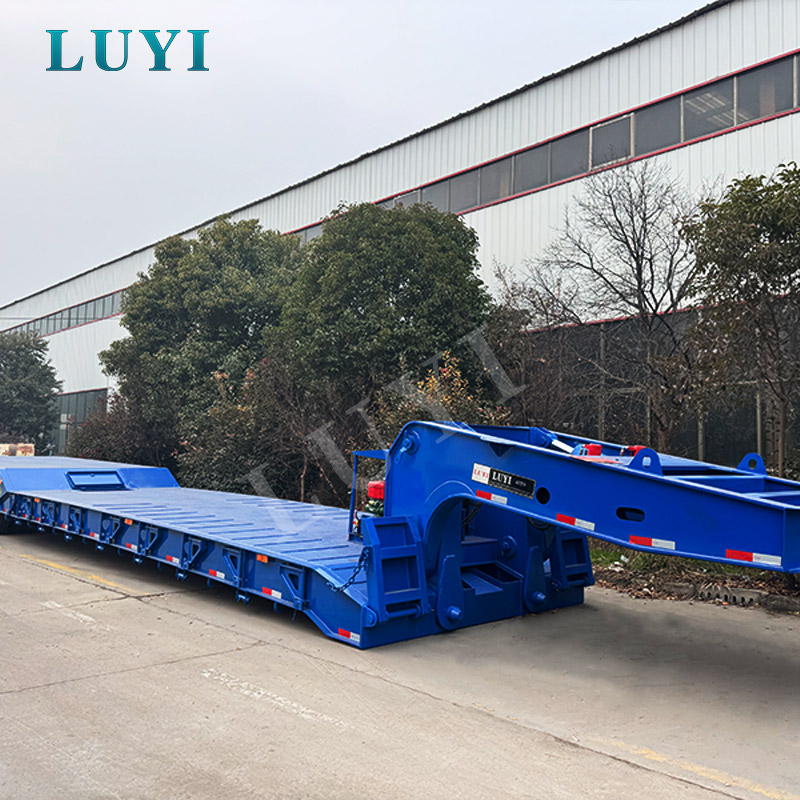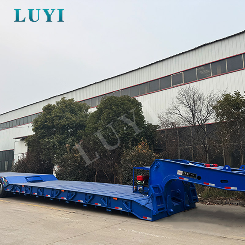 Hanhenkaularakenne mahdollistaa helpon lastaamisen ja purkamisen, jolloin raskaat koneet voivat ajaa perävaunuun ilman ylimääräisiä apulaitteita. Tämä puoliperävaunu on ihanteellinen rakennuskoneiden, kaivoslaitteiden ja suurten terästuotteiden kuljetukseen, ja se tasapainottaa tehokkuutta ja turvallisuutta, joten se on luotettava valinta logistiikkaan ja suunnittelutoimintoihin.