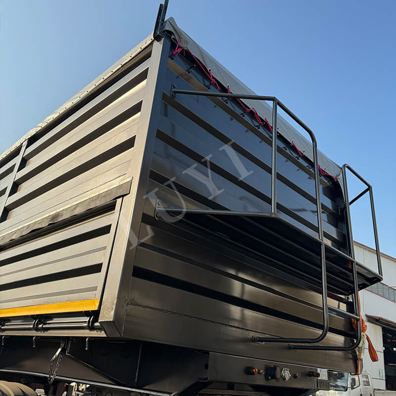 Shandongin maakunnasta, Kiinasta, peräisin oleva LUYI 4-akselinen 40-jalkainen 80-tonninen dump Semi-Trailer on tehokas kippipuoliperävaunu, joka on erityisesti suunniteltu hiekan, soran ja hiilen kuljetukseen. Perävaunun runko on valmistettu korkealaatuisesta hiiliteräksestä, jonka mitat ovat 9500×2500×3600 mm. Sen vankka rakenne kestää raskaita kuormia ja maksimi hyötykuorma on jopa 80 tonnia, mikä mahdollistaa erilaisten irtotavaroiden tehokkaan lastauksen.
