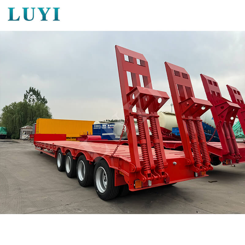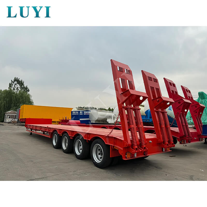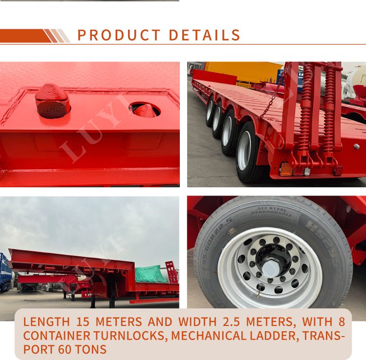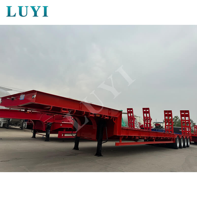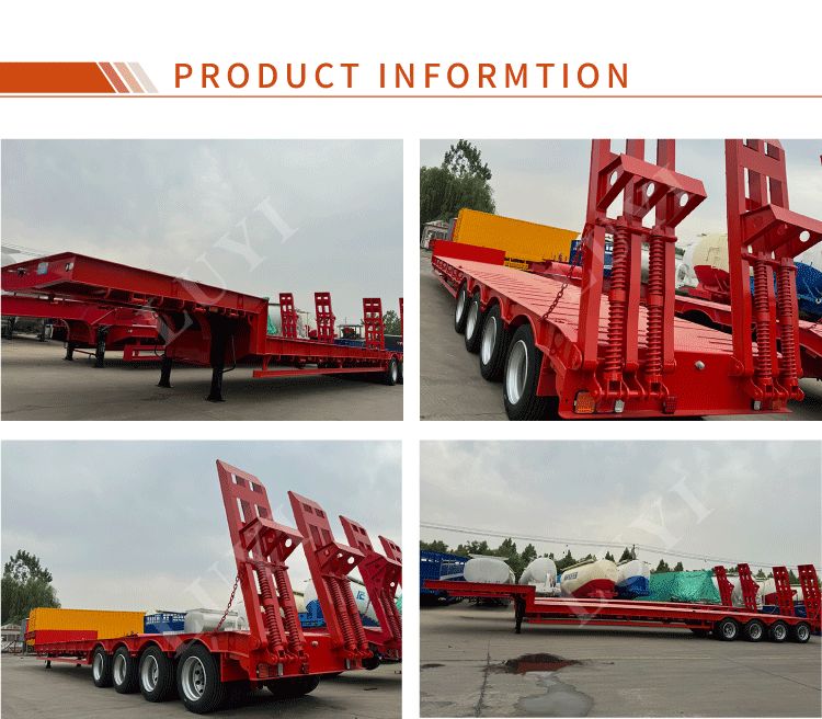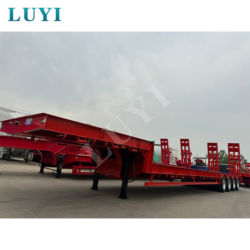 Luyi 4-Axle 60-Ton Gooseneck Lowboy Semi-Trailer, valmistettu Shandongin maakunnassa, Kiinassa, on kuorma-auton perävaunu, joka on tarkoitettu raskaan lastin kuljettamiseen. Perävaunun runko on valmistettu korkealaatuisesta teräksestä, ja siinä on tukeva ja kestävä rakenne. Sen suurin hyötykuorma ylittää 30 000 kg, mutta myös 100 tonnia, kuljettaa helposti erilaisia raskaita tavaroita ja täyttää intensiiviset kuljetustarpeet.
