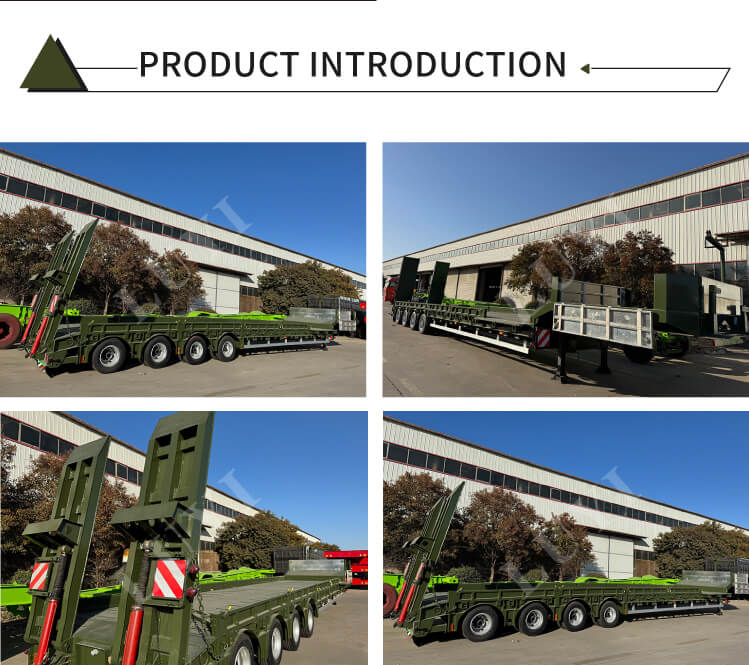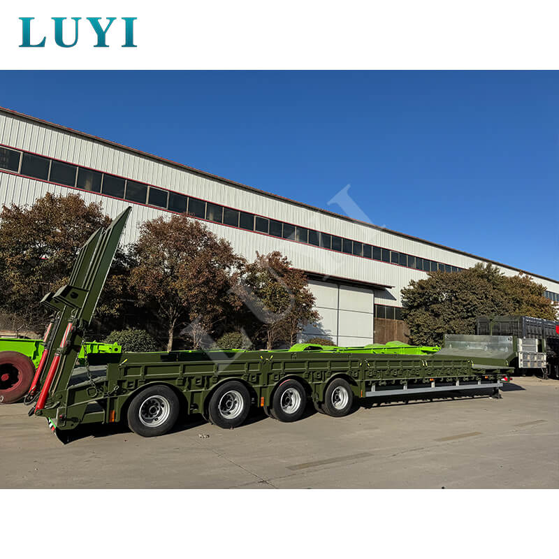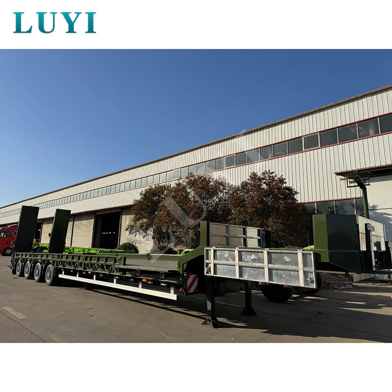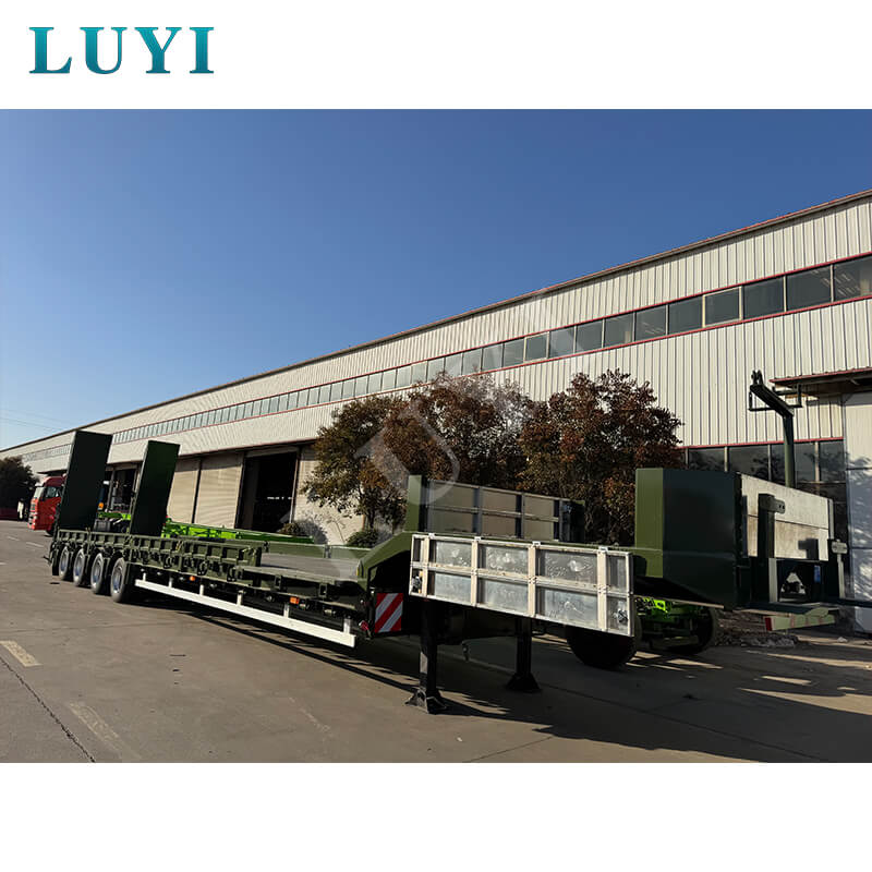 LUYI 4-Axle 60-Ton Gooseneck Low-Bed Semi-Trailer, upouusi tuote Shandongista, Kiinasta, on ammattimainen kuorma-auton perävaunu, joka on suunniteltu raskaaseen lastin kuljetuksiin. Sen päämateriaalina käytetään korkealaatuista terästä, jonka vakiokoko on 13m × 3m × 2,5m ja maksimi hyötykuorma 60 tonnia raskaan kuljetuksen tarpeisiin.