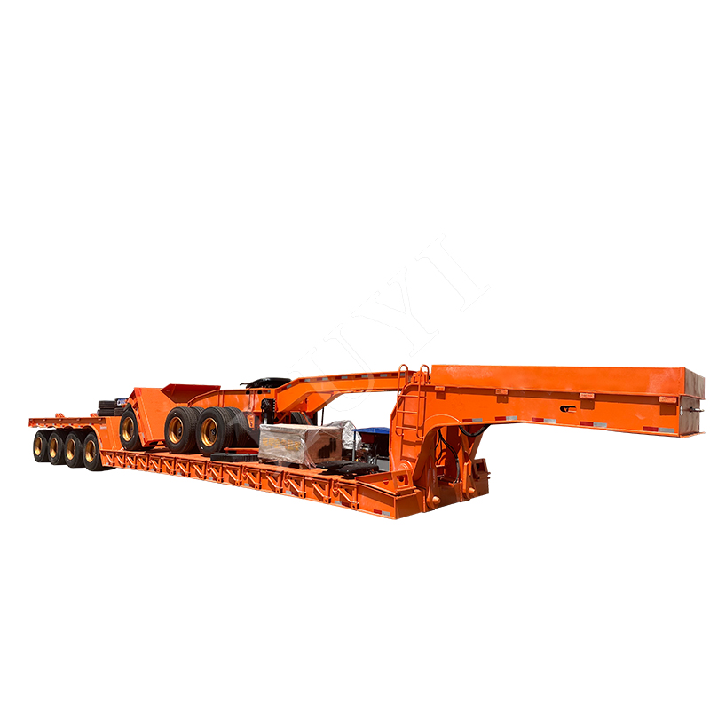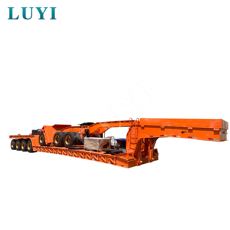 LUYI VEHICLE:n 4-akselinen irrotettava hanhenkaulapuoliperävaunu Shandongista, Kiinasta, on luotettava raskaan liikenteen kuljetusratkaisu, jonka hyötykuorma on enintään 80 tonnia. Sen mitat ovat 18000×2500×1500mm, ja se sopii täydellisesti kuorma-auton perävaunun käyttötarpeisiin.