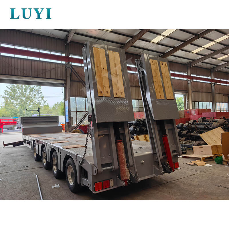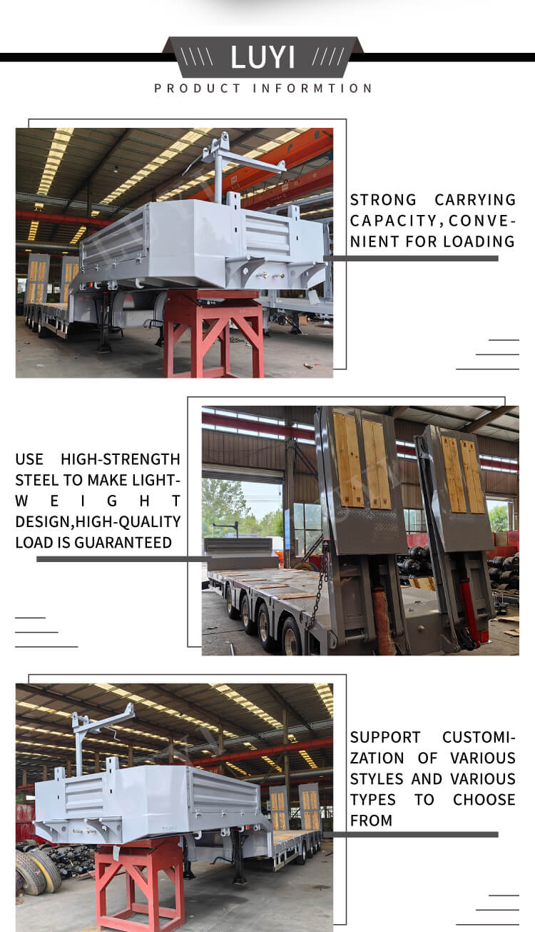 LUYI 4-akselinen teleskooppinen 6-metrinen Lowboy Semi-Trailer, valmistettu Shandongin maakunnassa, Kiinassa, on upouusi kuorma-auton perävaunu, jolla on erinomainen suorituskyky. Sen runko on valmistettu korkealaatuisesta teräksestä, jossa on tukeva ja kestävä rakenne, ja sen suurin hyötykuorma vaihtelee 20 001 kg - 25 000 kg, mikä vastaa erilaisten tavaroiden kuljetustarpeita.