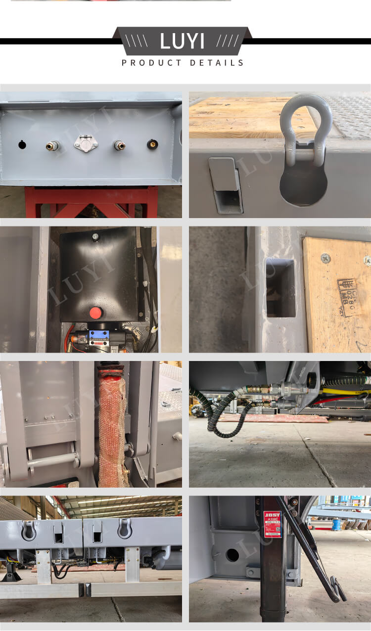 Perävaunun mitat ovat muokattavissa, ja se tarjoaa 2/3/4-akselivaihtoehtoja. Ilmajousituksella ja 12R22.5 renkailla varustettuna se takaa tasaisen ja mukavan ajon. Vakiovarusteet 28 tonnin tukijalat tarjoavat luotettavan tuen, kun taas kaksilinjainen jarrujärjestelmä takaa ajoturvallisuuden. Vanteen tekniset tiedot ovat 8,0/9,0 × 8/12/16 kappaletta, ja kingpin on varustettu 2 tuuman (50 mm) tai 3,5 tuuman (90 mm) JOST-vaihtoehdoilla vahvan mukautuvuuden takaamiseksi. Asiakkaat voivat valita värin, mikä tasapainottaa käytännöllisyyden ja personoinnin, mikä tekee siitä ihanteellisen valinnan tehokkaaseen kuljetukseen.