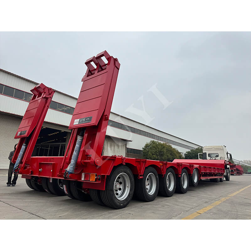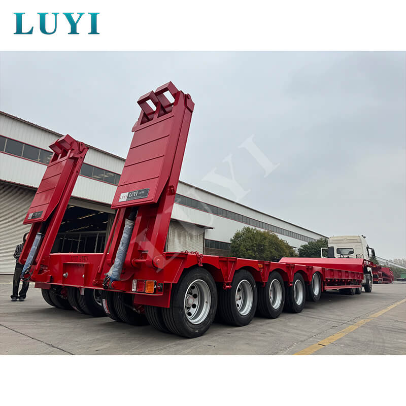 LUYI 5-Axle 180-Ton 5-Line 10-Axle Lowboy Trailer, joka valmistettiin alun perin Shandongin maakunnassa, Kiinassa, on upouusi puoliperävaunu, joka on suunniteltu erityisesti kuorma-autojen perävaunusovelluksiin. Se täyttää raskaan kuorman kuljetustarpeet suurella kantavuudellaan ja vahvalla vakaudellaan.