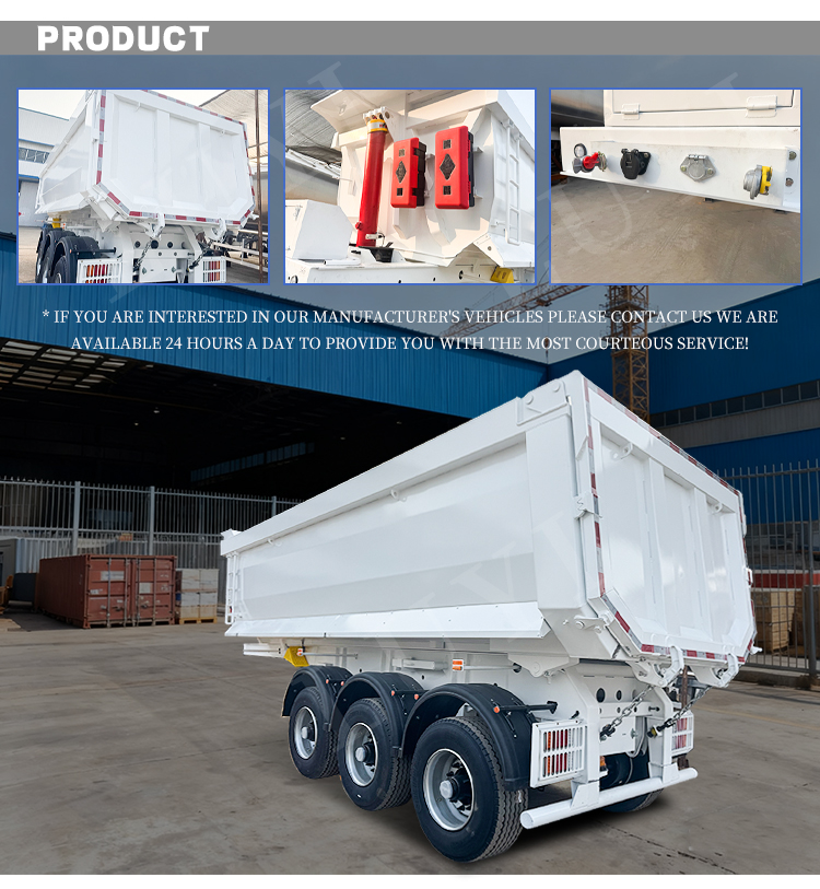 LUYI:n kolmiakselinen U-muotoinen hydraulisesti säädettävä takakippipuoliperävaunu on tehokas kuljetusväline, joka on erityisesti suunniteltu materiaalien kuten hiekan, soran ja viljan kuljetukseen. Se on peräisin korkealaatuisesta valmistuksesta Shandongissa, Kiin......