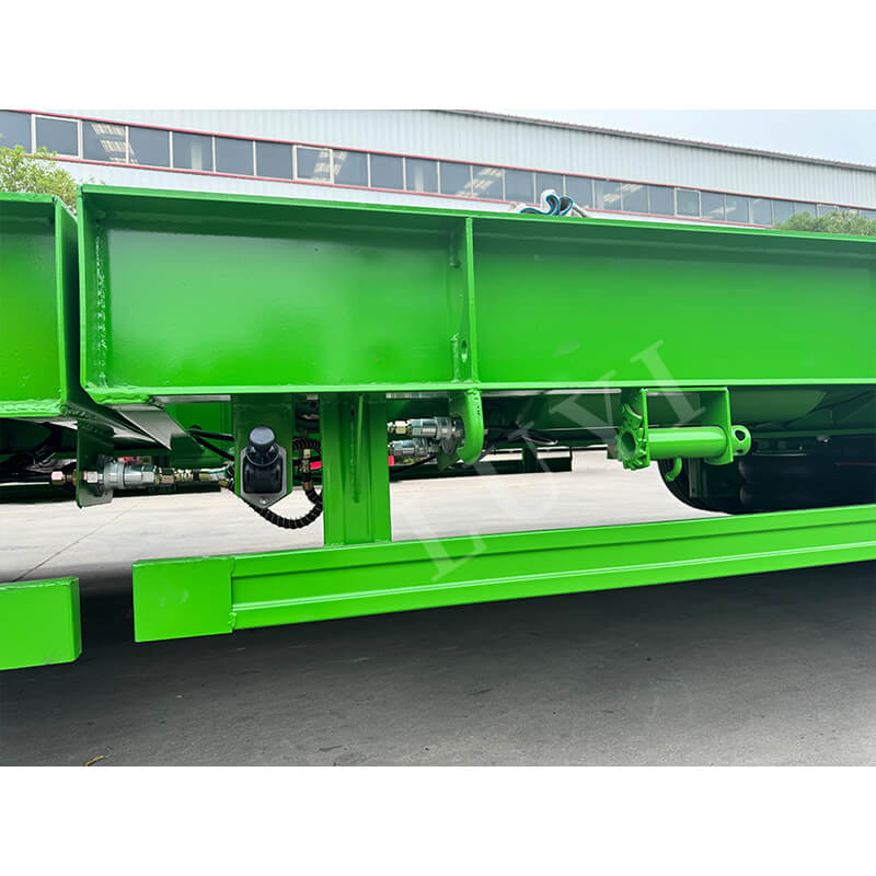 Varustettu 13-tonnisilla Fuwa-akseleilla, mekaanisella jousituksella ja kaksilinjaisella jarrujärjestelmällä, se tarjoaa herkän jarrutusvasteen ja turvallisen ajon. Yhteensopiva useiden rengasten kanssa, mukaan lukien 11.00r20, 12r22.5, 315 ja 385, sen maksimi hyötykuorma on 60 000 kg ja kantavuus 100-120 tonnia. Se on konfiguroitu tavallisilla 28 tonnin tukijaloilla, ja sen mukana tulee valinnaiset 2 tuuman (50 mm) tai 3,5 tuuman (90 mm) JOST-piiput. Muokattavissa väriltään, se on ihanteellinen valinta raskaaseen kuljetukseen.