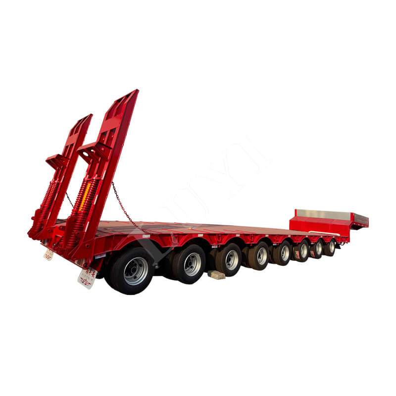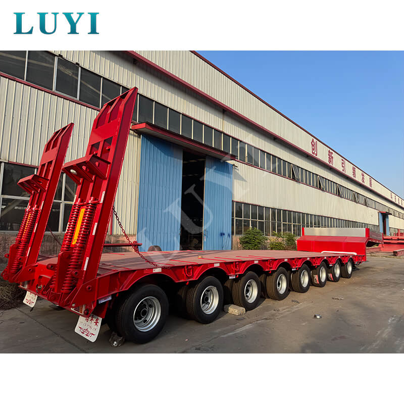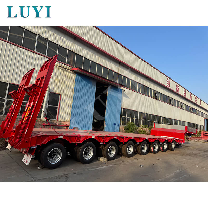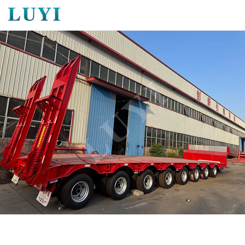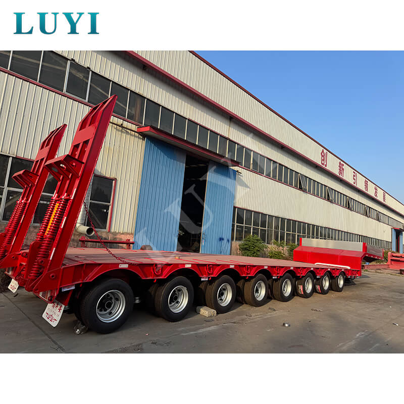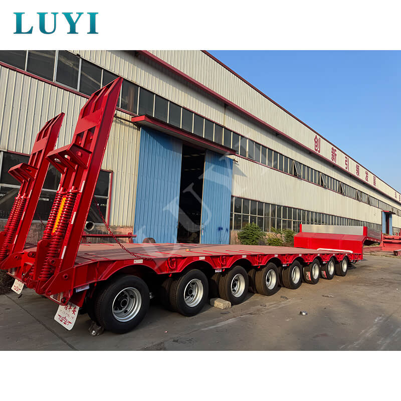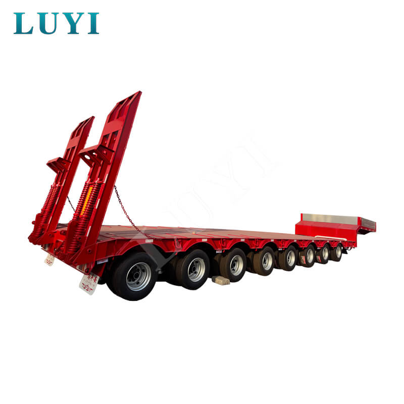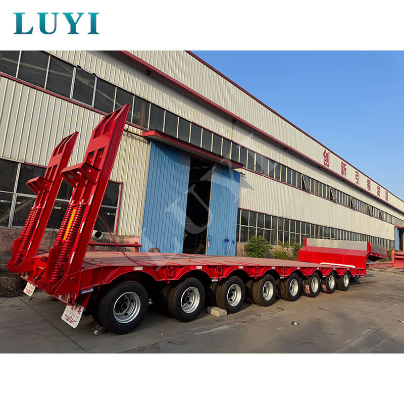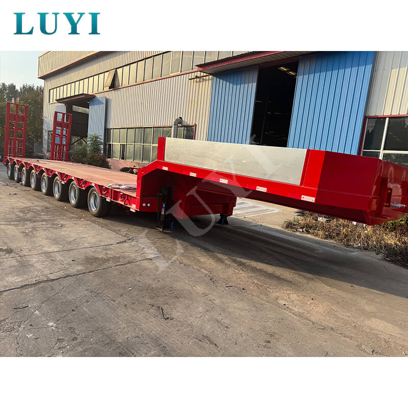Luyi 8-akselinen 150 tonnin 40 jalkaa kuormaava hydraulinen matala-bed-puoliperävaunu, joka on peräisin Shandongin maakunnasta, Kiinasta, on korkealaatuinen puoliperävaunu, joka on erityisesti suunniteltu raskaaseen lastin kuljetuksiin. Se on valmistettu korkealaatuisesta teräksestä, ja siinä yhdistyvät lujuus ja kestävyys, maksimi hyötykuorma 100 tonnia ja maksimikantavuus 150 tonnia, mikä vastaa helposti erilaisiin raskaisiin kuljetustarpeisiin.