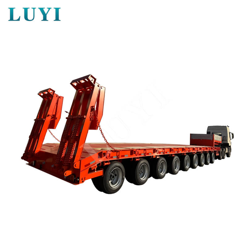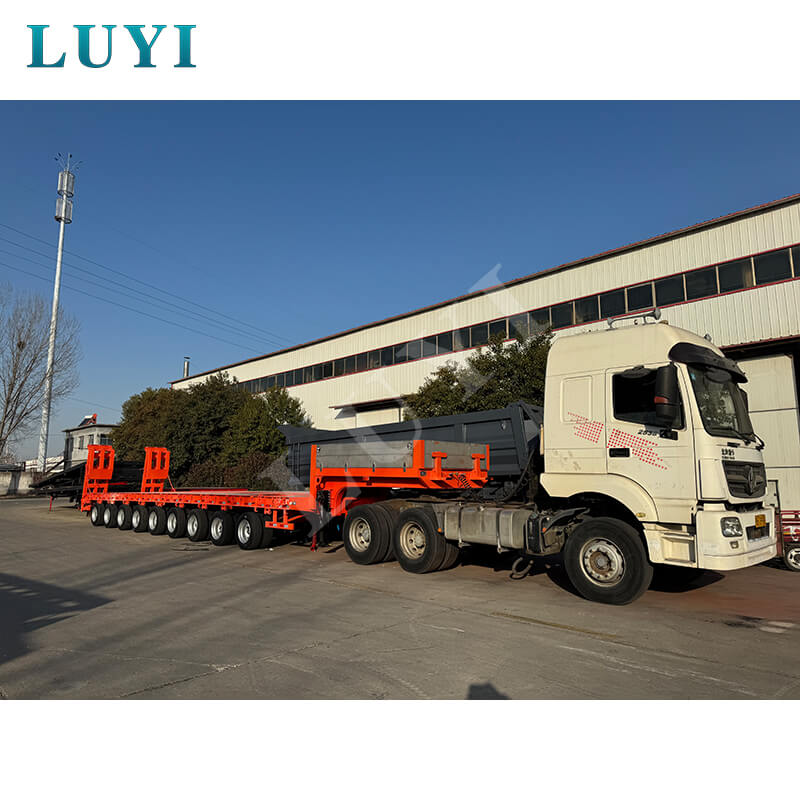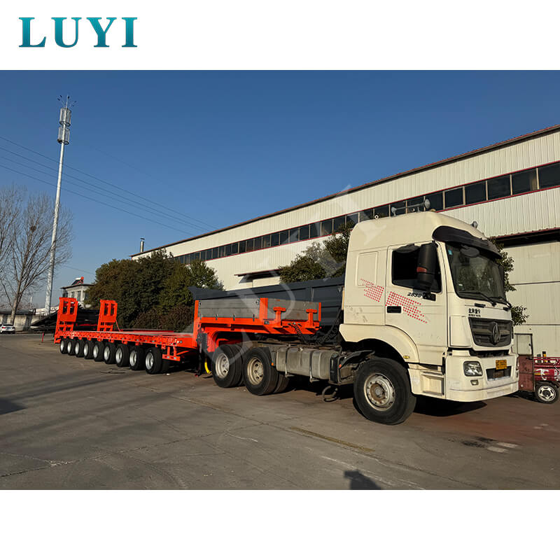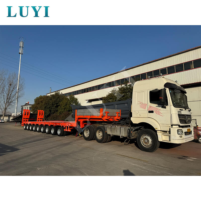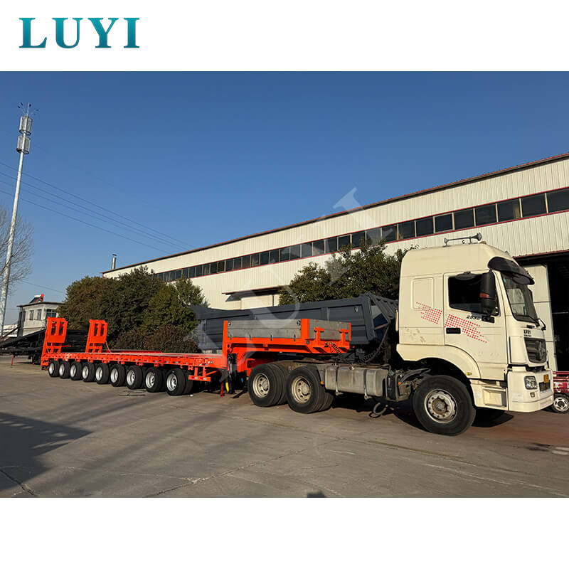 Shandongista, Kiinasta kotoisin oleva Luyi 9-akselinen 100-tonninen Gooseneck Lowboy Semi-Trailer on korkealaatuinen puoliperävaunuvaruste, joka on suunniteltu erityisesti raskaaseen lastin kuljetuksiin. Yhteensopiva kuorma-auton hinauksen kanssa, sen mitat ovat 17x2,55x1,5m. Varustettu 9-akselisella kokoonpanolla ja valinnaisella mekaanisella tai ilmajousituksella, sen kuormituskyky vaihtelee 60-120 tonniin ja maksimikantavuus 100 tonnia, mikä takaa vankan laakeritehon.