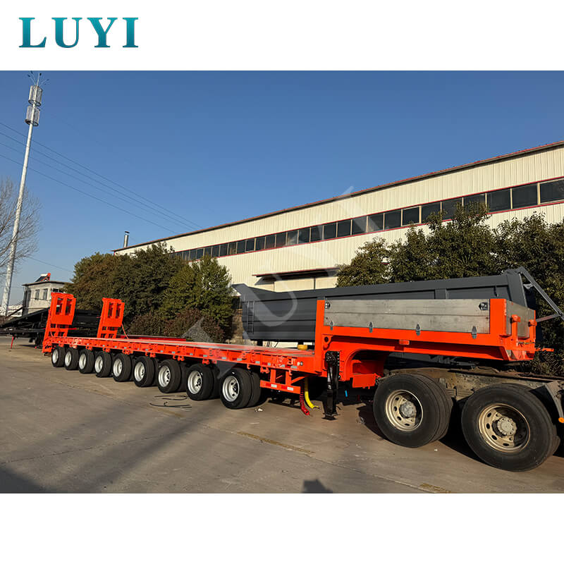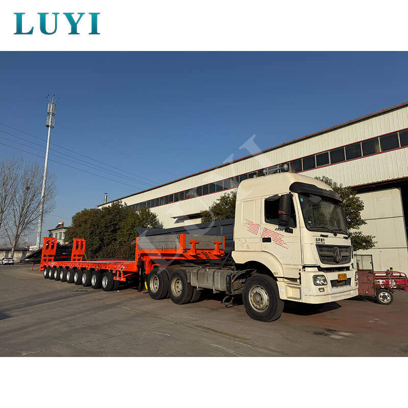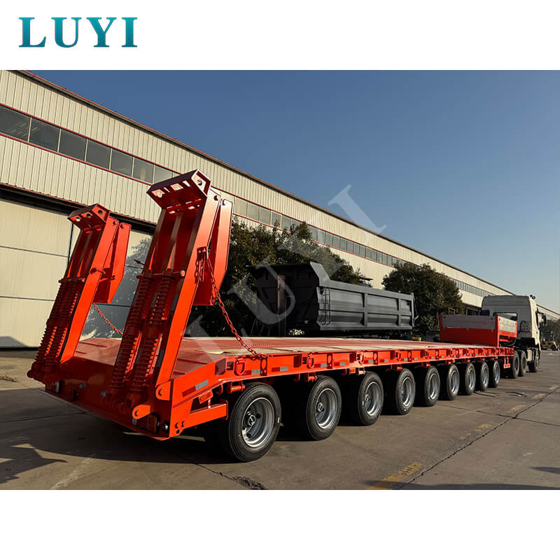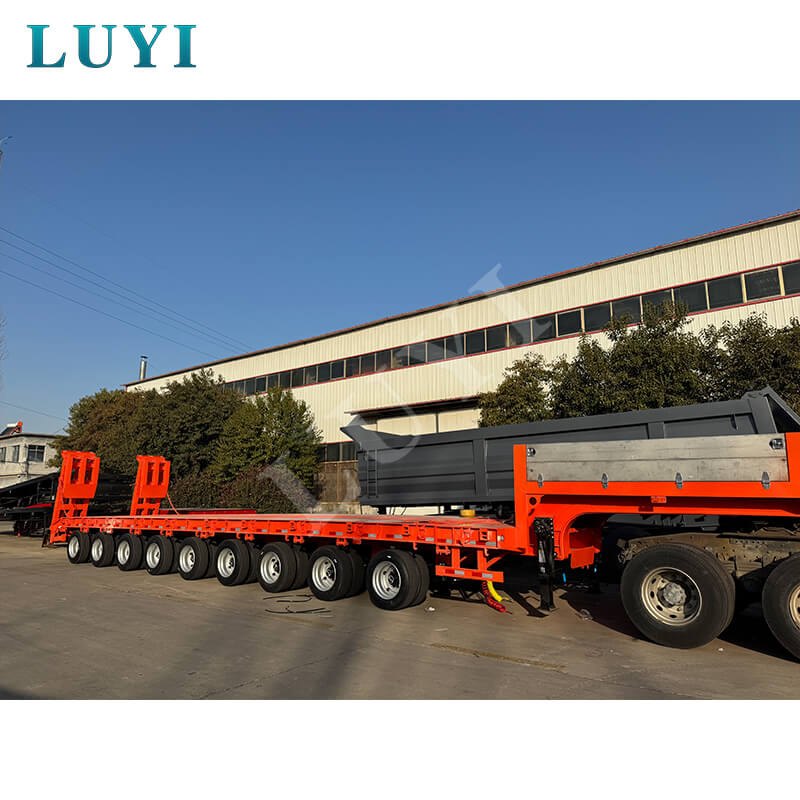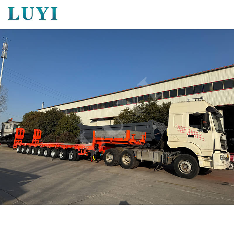 Shandongista, Kiinasta kotoisin oleva Luyi 9-akselinen 100-tonninen Gooseneck Lowboy Semi-Trailer on korkealaatuinen puoliperävaunuvaruste, joka on suunniteltu erityisesti raskaaseen lastin kuljetuksiin. Yhteensopiva kuorma-auton hinauksen kanssa, sen mitat ovat 17x2,55x1,5m. Varustettu 9-akselisella kokoonpanolla ja valinnaisella mekaanisella tai ilmajousituksella, sen kuormituskyky vaihtelee 60-120 tonniin ja maksimikantavuus 100 tonnia, mikä takaa vankan laakeritehon.