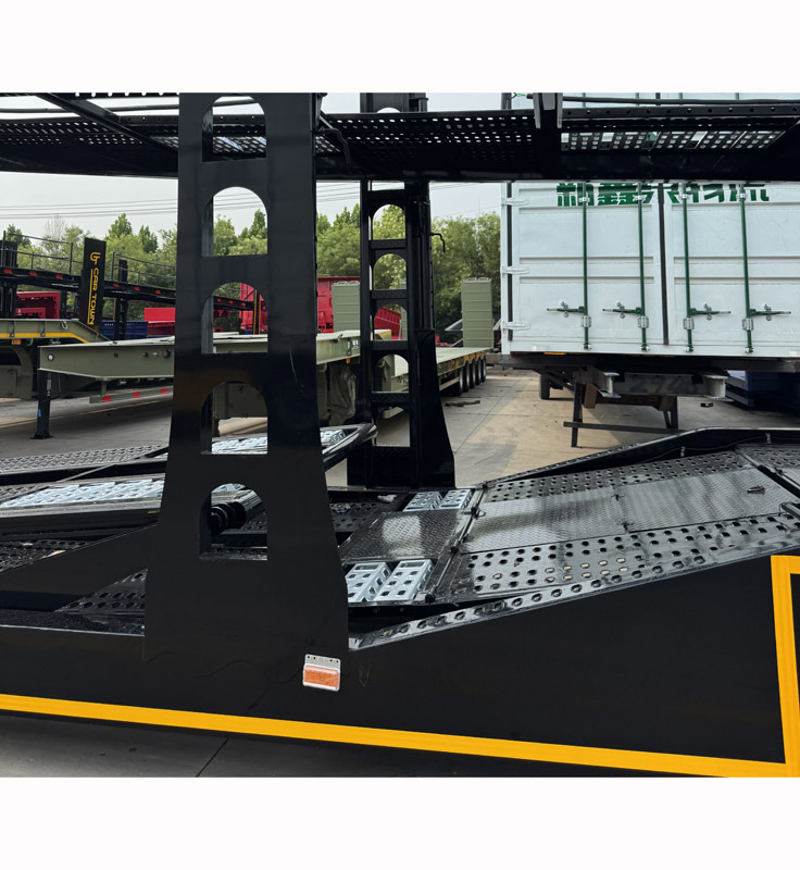 Turvallinen ajoneuvon kiinnitysjärjestelmä: Jokainen pyörän asento on varustettu ammattimaisilla, säädettävillä pyöräkiiloilla ja erittäin lujilla kiinnityshihnoilla, mikä varmistaa, että jokainen ajoneuvo on kunnolla kiinnitetty ja pysyy paikallaan kuljetuksen aikana.