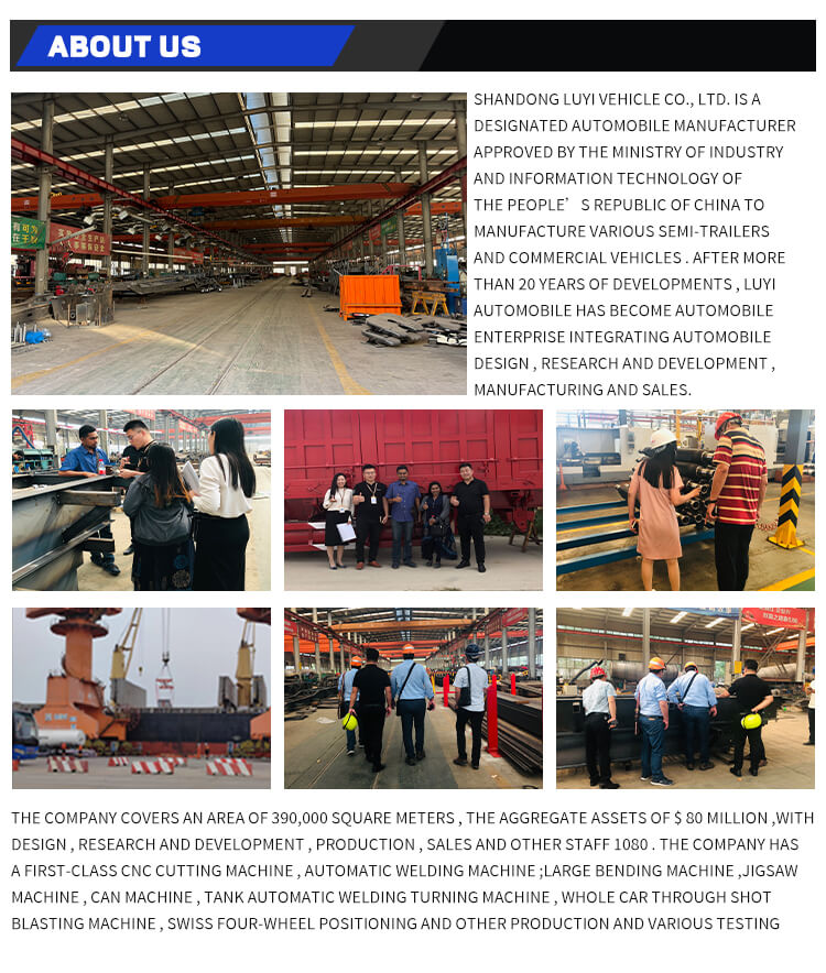 Shandongin maakunnasta Kiinasta kotoisin oleva Luyi 3-akselinen irrotettava puoliperävaunu on korkealaatuinen kuorma-auton perävaunu (kutsutaan myös lavaperävaunuksi), joka soveltuu tehokkaaseen tavarankuljetukseen. Sen runko on valmistettu erittäin lujasta teräksestä, joka yhdistää kestävyyden ja vakaan kantavuuden. Maksimitehoisella 60 tonnin hyötykuormalla se pystyy kuljettamaan joustavasti kontteja ja irtotavaraa ja vastaamaan helposti erilaisiin logistiikkatarpeisiin.