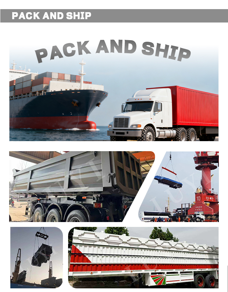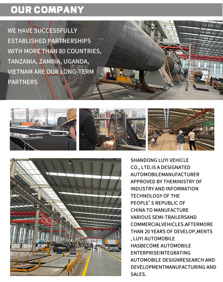 LUYI-merkkinen valkoinen 3-akselinen taakse kallistuva kippipuoliperävaunu, joka on peräisin korkealaatuisesta valmistuksesta Shandongissa, Kiinassa, on tehokas kuorma-auton perävaunu, joka on suunniteltu erityisesti raskaan kuorman kuljetuksiin. Tuote on valmistettu erittäin lujasta teräksestä, jonka rakenne on vakaa ja kestävä. Sen mitat ovat 1300 mm × 2500 mm × 4000 mm ja maksimikantavuus 100 tonnia, mikä vastaa helposti erilaisten raskaiden tavaroiden kuljetustarpeisiin.