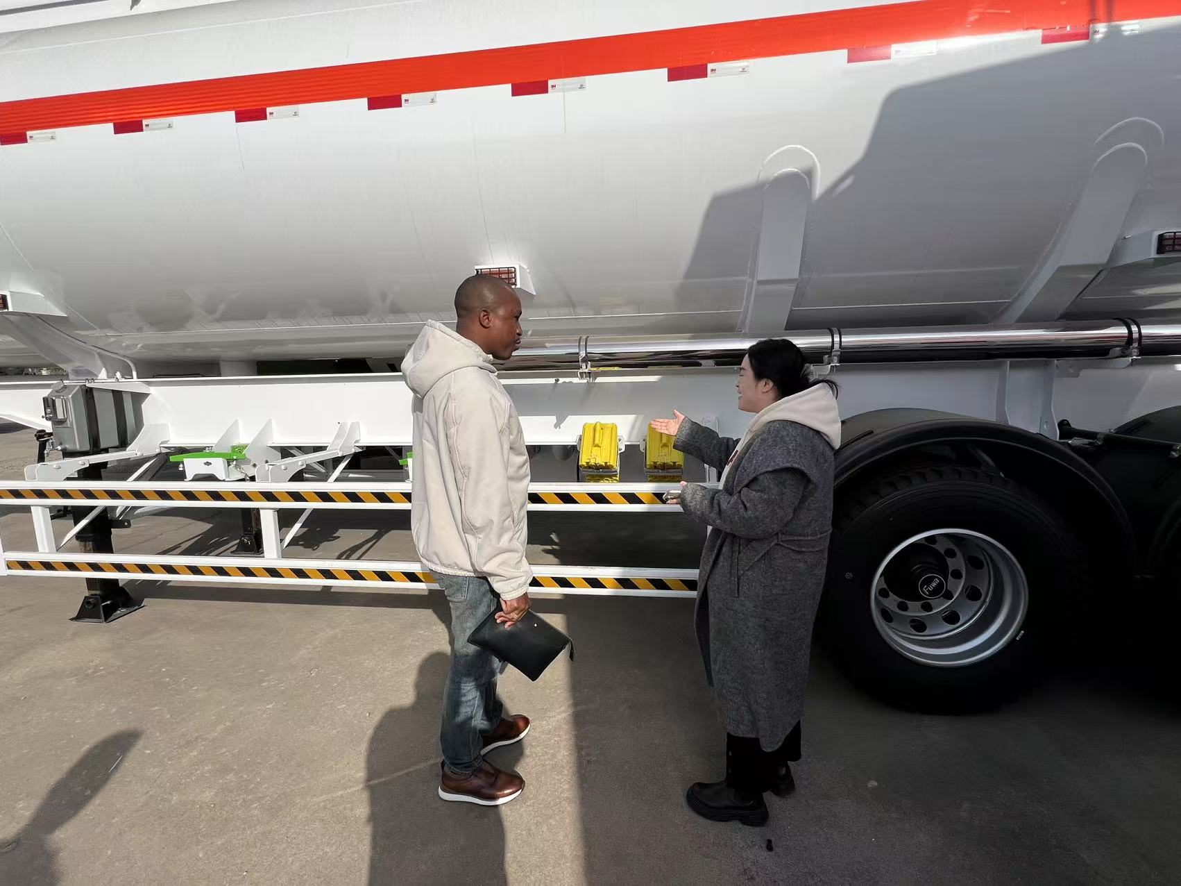 Diallo yllätti eniten LUYI:n hänelle valmistama räätälöity ratkaisu. Valmiiden tuotteiden esittelyalueella erottui "Guinea Special" -merkinnällä varustettu säiliöpuoliperävaunu: siinä oli säiliön kyljessä aurinkosuoja- ja lämmöneristyskerros, tyhjennysaukossa tukkeutumisenestolaite ja jopa renkaat oli päivitetty kulutusta kestäviin maastomalleihin. "Tutkimme Guinean ilmastotietoja. Tiet muuttuvat liukkaiksi sadekauden aikana, ja nämä renkaat voivat parantaa pitoa 20 %", LUYI:n myyntipäällikkö sanoi luovuttaen testiraportteja, joissa kerrotaansäiliöauton puoliperävaunutkantava ja tiivis suorituskyky simuloiduissa Afrikan tieolosuhteissa.