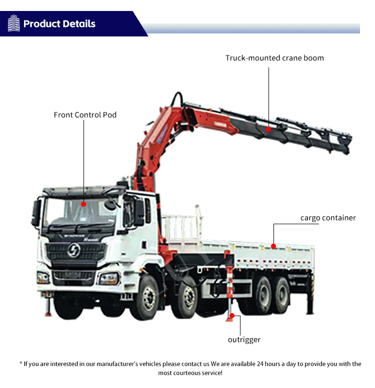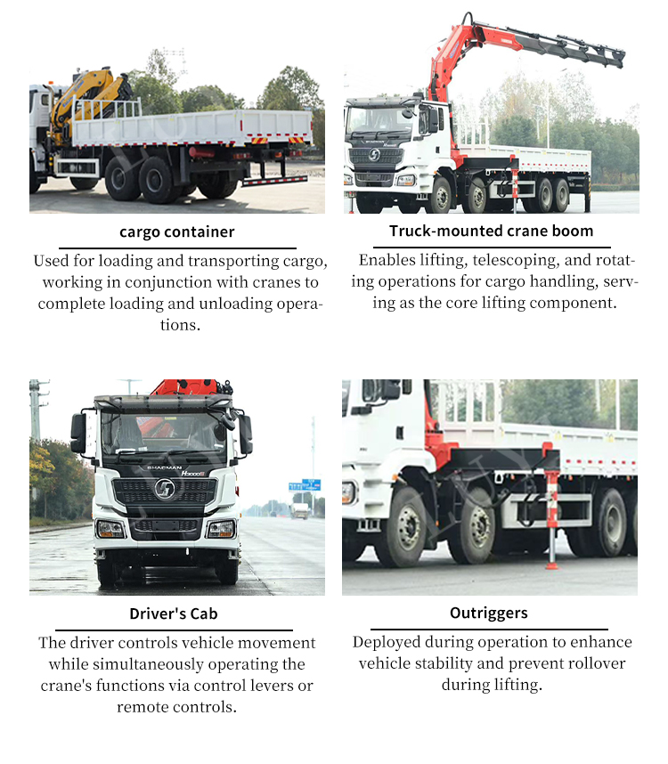 Taitettavalla varrella varustetun Shacman 8*4 -nosturiauton nimellisnostomomentti on 28t, suurin nostokorkeus 23,5 m ja työskentelyväli 20,8 m, mikä vastaa täydellisesti rakennusskenaarioiden monipuolisiin nostotarpeisiin. 2035 kg:n kokonaispainolla kuorma-autossa on kompakti ja joustava rakenne, ja sen taittuva varsirakenne säästää merkittävästi kuljetus- ja pysäköintitilaa.